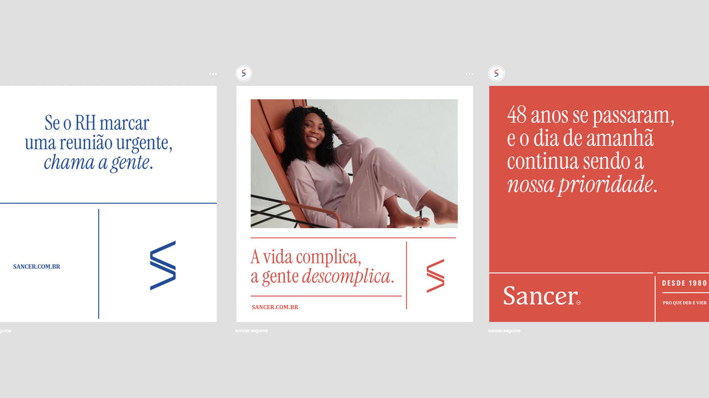 Another key feature of this project is the use of color, which plays an important role in building the brand's identity: red is used when Sancer communicates insurance for individuals, and blue is reserved for business-related services.